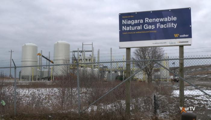 Mike Balsom visits with Graham Guest, General Manager, Energy & Technical Services, Environmental Division at Walker. Graham gives Mike a tour of the Niagara Renewable Natural Gas Facility located on the Walker Campus in Thorold.