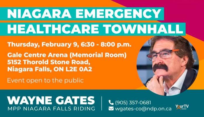 Wayne Gates, MPP for Niagara Falls is hosting an Emergency Health Care Town Hall at the Gale Centre Arena on Thursday, February 9th at 6:30 p.m. Mike Balsom files this report.